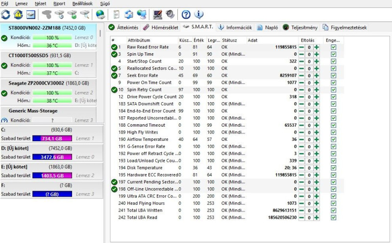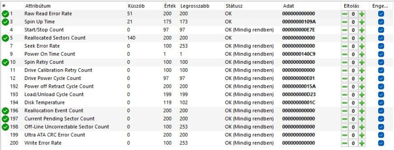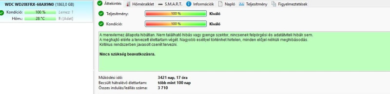 Onnan látni, hogy parkol, hogy nagyságrendi különbséget látni a 4. és a 193-as sorok számai között. De az a ~77000 még nagyon messze van a 600.000-hez.2. HDS tökéletes monitorozni, csak állandóan fusson a háttérben, mert akkor egyből tud figyelmeztetni, ha a Kondíció elkezdene csökkenni. Alapból talán 75%-nál kezd el figyelmeztetni, de én átállítottam 95%-ra. Azt nem tudom, hogy fut-e a NAS-on.