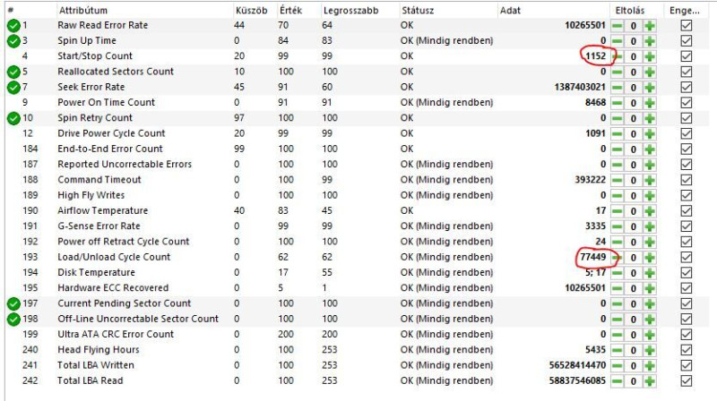 Ezért nagyon nehéz megmondani, melyik HDD mennyit parkol, mert sokszor azért magas az érték, mert a sw környezet indokolatlanul ébresztgeti.