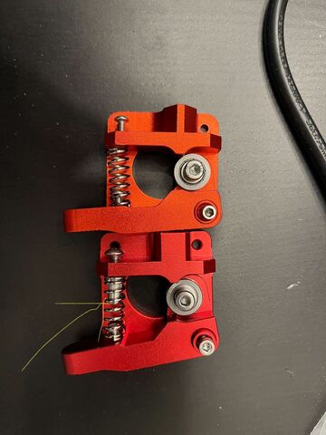 Nem fogta meg neki a filamentet a két görgő, mert hiányzik a rugóból az a persely, amibe belemegy a csavar és lehet feszíteni vele a rugót. De már megjött neki a másik kar.