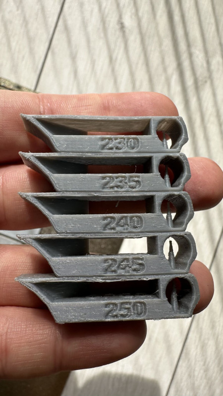 Sunlu (ezüst) PETG-vel próbálkoznék a Bambu P1S-en, de szerintem baromi ronda. Visszaolvasva az jött le, hogy kb 240/75-80 vált be a többségnek, így én is nagyjából ilyen hőmérsékleteket próbálok, de hát a lenti képeken látszik, hogy nem oké valami. Egyfelől tele van a temptower az én olvasatomban blob-bal. Illetve a rétegek is olyan furák, mini lyukak vannak a felületen. Ezért próbáltam egy flow calibrationt csinálni, de hát itt nekem most nem tiszta. A lyukak kb a 15-ösnél szűnnek meg, viszont ott meg nekem már overextrusion is látszik. Vélemény, javaslat? (Orca-val és a generic petg profillal próbálkozok, csak a hőmérsékleteket módosítottam.)
