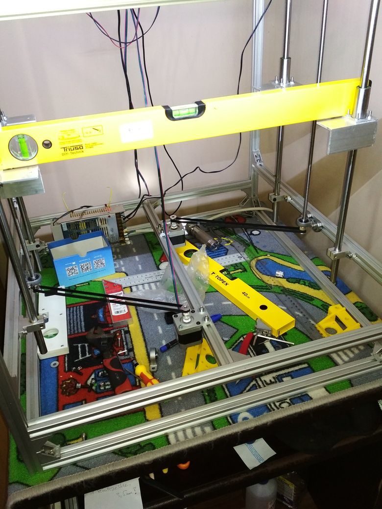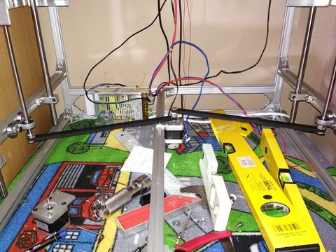 Átalakítottam a Z tengelyt mozgató részt, mert idegesített, hogy a motorok a teherviselő elemek, illetve, hogy kikapcsoláskor a jobb és bal oldal eltérő mértékben ereszkedik meg, így mindig újra kellett szintezni.