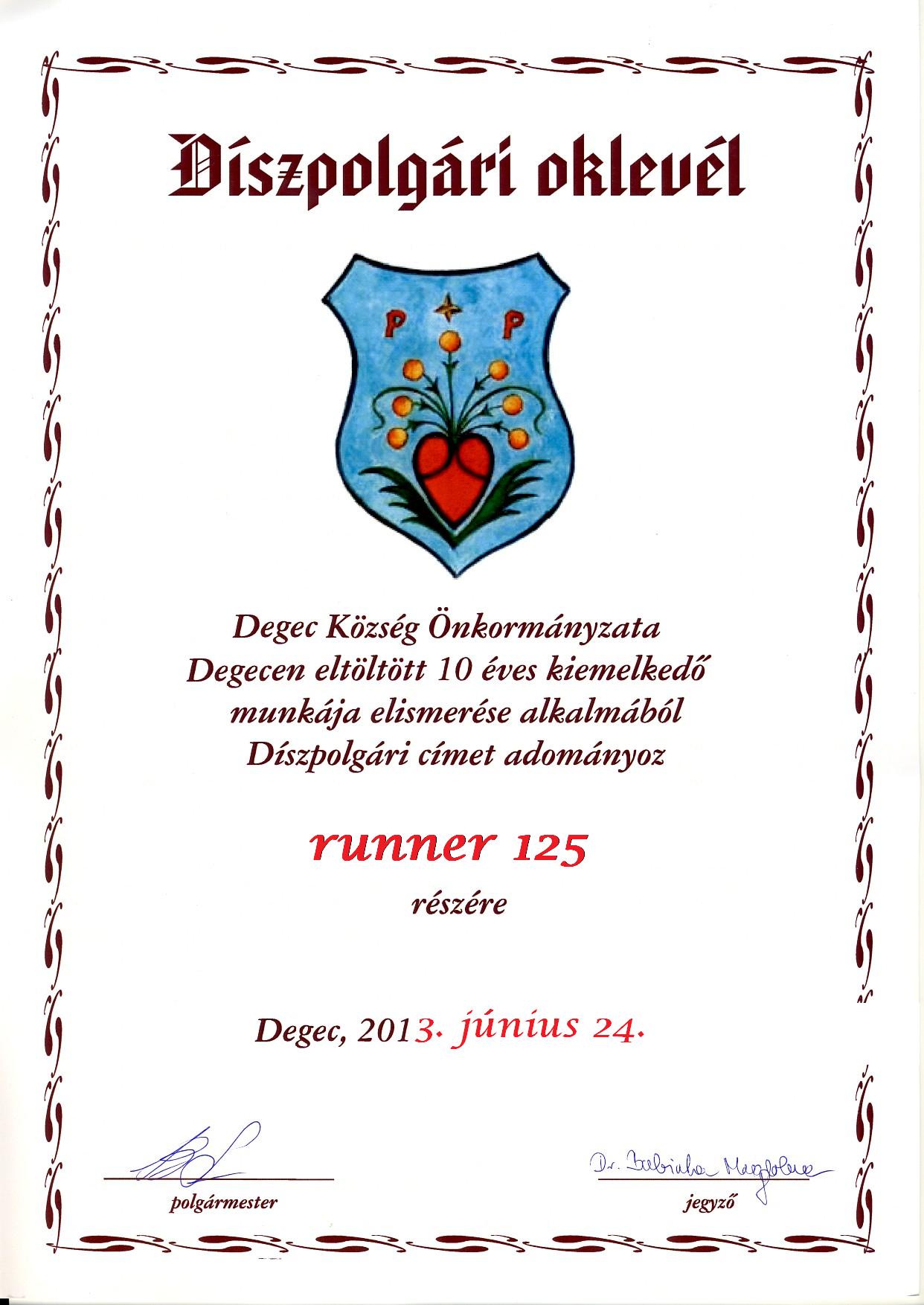 Runnernek meg jár egy ilyen elismervény (de nem kell megsértődni, szvsz):