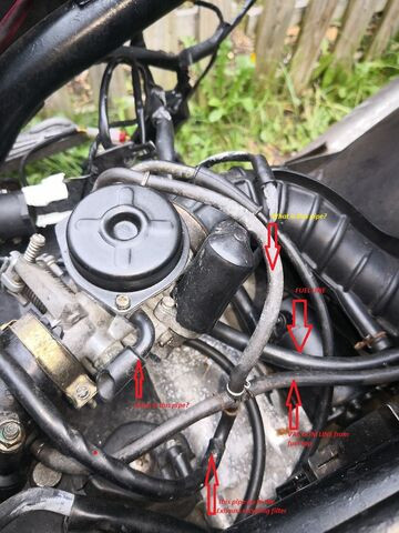 Az onnan jovo cso 3 fele van osztva, egy megy a karbiba, egy abba a csobe ami megy a motorba a karbibol, egy pedig a talan vacuum pumpaba.A benzin pumpa pillango szelepe jo, az a vacuum ag jo.