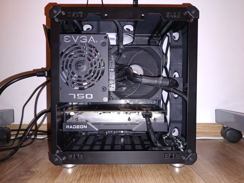 Nálam meg akkor lesz baj, ha lecserélném a 22.3 cm-es PowerColor RX 7600 Hellhound-ot. Ami jó RX 9060 XT vonalon, az a 24 cm-es Sapphire Pulse, viszont a 20 cm-es PowerColor Reaper jóval melegebb. Azonban csak bő 23 cm helyem van ebben a kialakításban. Így repülnie kell majd az alsó front ventinek...