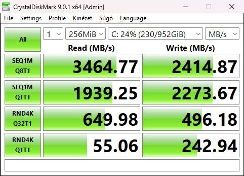 Write cache engedélyezés után (előtte fele ennyi az írás sebesség)