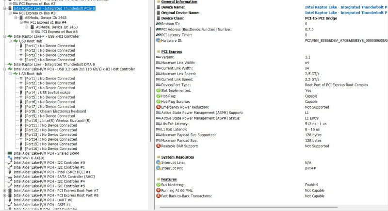 Advanced → Platform Settings → TCSS Platform Setting → Thunderbolt™ Configuration → USB4 CM Mode → OS DependentOS Dependentre kell rakni, azaz ne a BIOS kezelje hanem az OS