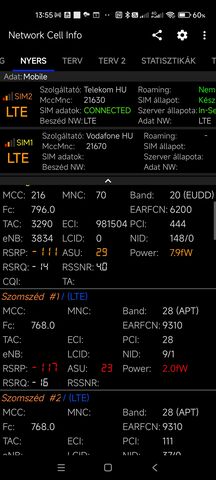 Pl. a Network Cell Info appal tudsz részletesebben körülnézni, hogy milyen sávon milyen adók érhetők el a helyszínen? -