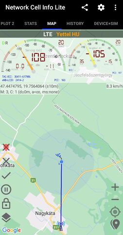 cellmapper-en nem találom az eNB2414-es tornyot amire a router kapcsolódik elméletilegTovábbbi 2 torony van a "közelben" kb.6km, néztem a cellákat is a környéken, nem tudom, hogy az számít jobban hogy ráláss egy toronyra, vagy legyél benne egynek a cellájában.