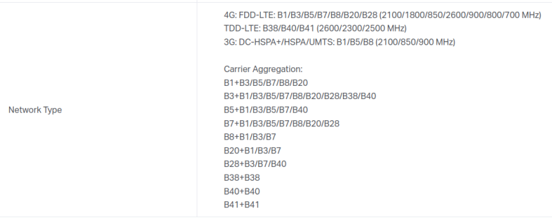 4G csatlakoztatott sáv 20.0MHz@800(B20) + 20.0MHz@1800(B3) + 15.0MHz@2100(B1)