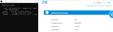 Az előbb is gyenge sebesség miatt kicsit elfordítottam, a sávok többnyire B1, B8, B3, 104 dBm, más irányban B20, B1, 99 dBm, de ha ezek nem változnak, marad ugyanazon a sávokon, akkor is tud javulni romlani a sebesség, ha 1-2 cm-t fordítok a Routeren. Másnap megint állítani kell. A torony fix helyen van, nem értem akkor miért változik ennyire a megfelelő irány? Nem használat, vagy terhelés hatására, hanem azonnal képes jó lenni, ha akár 1cm-t elfordítom. -