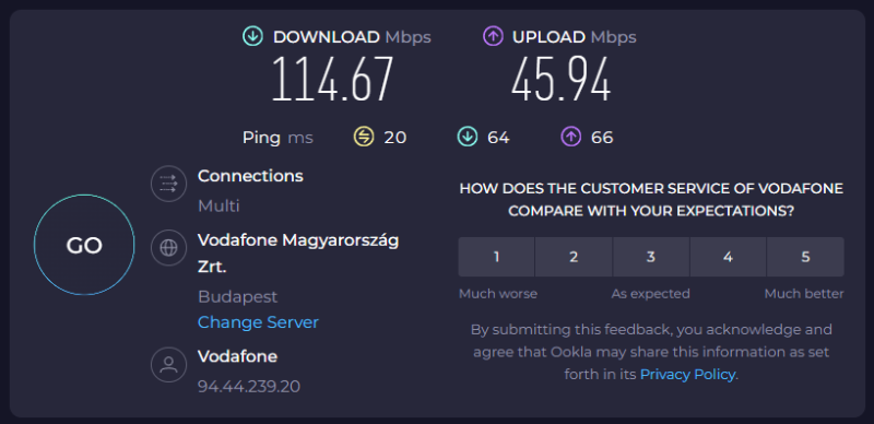 Egyébként kint vagyunk most a háznál épp és a villanyszerelő sráccal nézegettük mobilon a Vodafonos adatsebességet. Nálam (Pixel7) DL 10 Mbit/s, nála iPhone 14-gyel 50 Mbit/s. WTF??