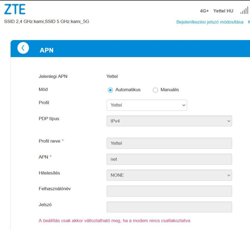 Másik modem. ZTE Manager ugyanaz a felület azonos szoftvernél.