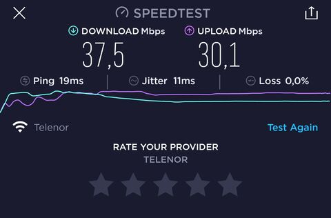 Nagyon jó sebesség és válaszidő, feltöltési sebesség simán 30-35 megabit/sec is megvan.