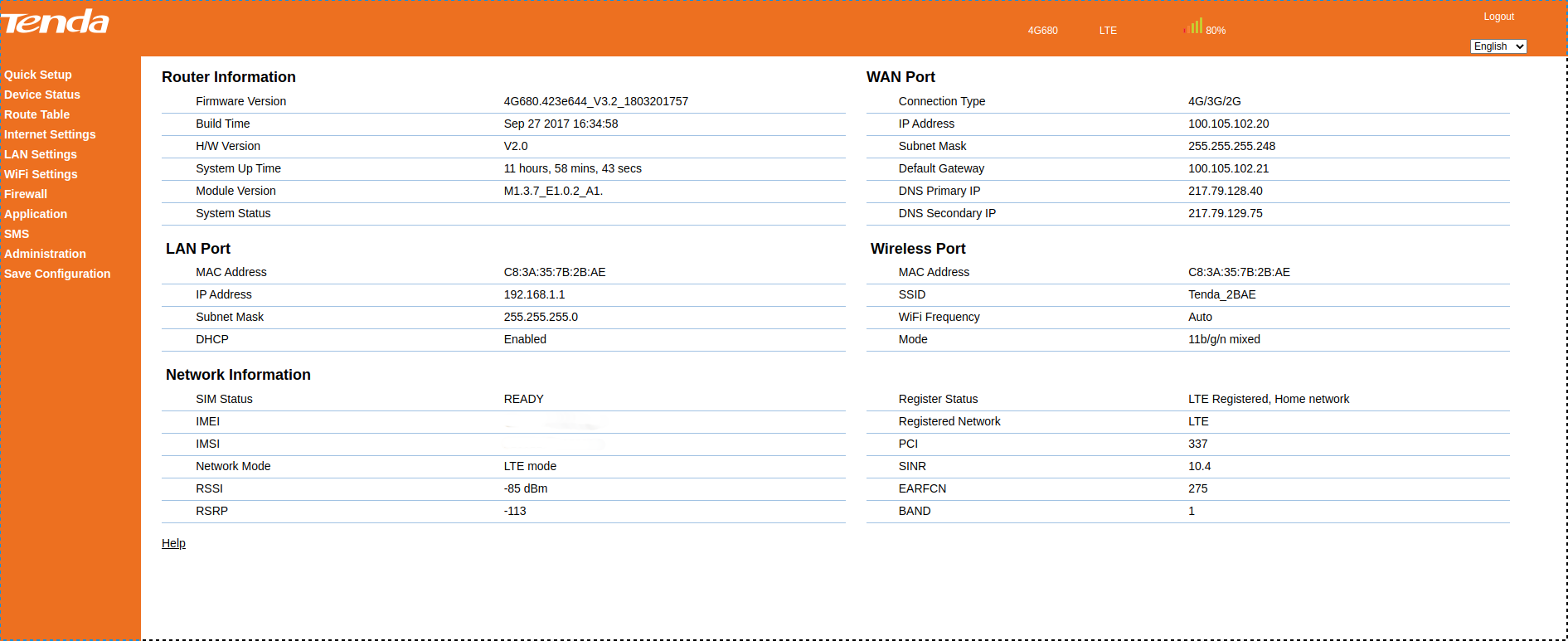 A Tenda felületén egy plusz csavarra volt szükség, mivel (talán adatvédelmi okokból) a rengeteg infó közé pont nem fért ki az eNodeB és a TAC, de mivel a régió az előző screenshotból már megvolt, így arrafelé kellett keresni.