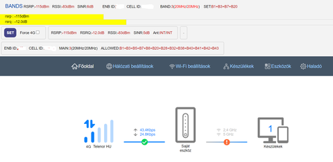 Van rá pár megoldás. [link] Én ezt a kettő könyvjelzőként elmentett scriptet használom. Jól látható így az is, hogy a 200m-re lévő B28 vagy B20 sávot hanyagolja a router, helyette a 4500 méterre lévő B3, vagy B1-re csatlakozik nagy örömömre. Lehetne 4G+ is, de hát azt csak ritkán valósítja meg. (gyenge a jel) . A sebességek is eszerint alakulnak.