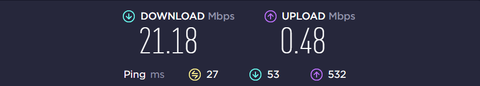 Először csak úgy letettem a szobában... ott nem túl acélos 40/1-et mértem. Gondoltam megpróbálom ablak mellett azért mégis... Ott már 70-90 letöltési megvolt. A feltöltés viszont nagyon gyászos. 2-4 Mbps-nél többet nem nagyon mérek. Lehet még pakolgatom a lakás különböző részeire, hátha ott jobb lesz.