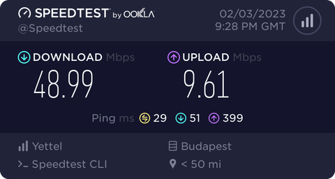 Én is néztem a yettel othonnetjét, futtatam egy címellenőrzést és meglepve tapasztaltam, hogy 5g és akár 1000 mbps elérhető nálam. Nekem egy kicsit nagyon marketing csalogató szagú, tekintve, hogy jelenleg B525-tel 20-30 mbps le- illetve feltöltési sebességem van. Helyileg Kecskeméten vagyok és a B525 adatai szerint a Szolnoki úti régi víztoronyra csatlakozok. Elképzelhetőnek tartjátok, hogy egy 5g vagy 4g cat1x routerral lényegesen jobb kapcsolatom lehet? A torony tőlem légvonalban kb. 500-600 m-re lehet, tiszta rálátásom van. A routerem telenoros és iQ korlátlan flottás netem van.