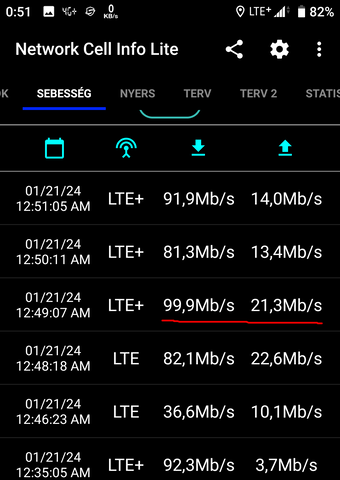 One topicban nyáron Zamárdi 1400Mbitet Ugyanúgy Samsung A55 el, úgyhogy nem gondolom hogy a telefon a szűk keresztmetszet.Yettelel 500Mbit körül volt a max amit mértem.