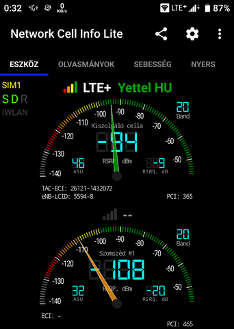 "enabled"-re lehetett tenni, de ugye ez a ZTE szoftver nem áll a helyzet magaslatán. Valószínűleg azért a külső antennát használja, mert egyébként hogy lett volna a -96-ból -81. Azért durva, hogy az ezeréves, CAT 1.0-s asus AC53U kb. hozza a Cat12-es zte letöltését, ugyanott, ugyanazzal a simmel: