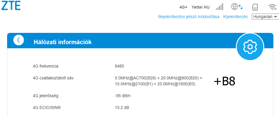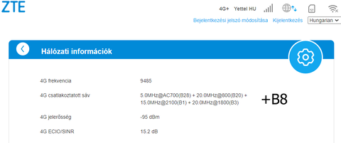 Vodafone szolgáltató. Egyszer szakad a kapcsolat. Estefelé mondjuk B20-ra LTE kapcsolatra visszavált az LTE+-ról. Az is előfordul hogy csak B1 önmagában vagy B3 önmagában kapcsolatot tart fenn. Azt meg nem értem miért nem von össze két azonos frekvenciát a modem csak különbözőket. ZTE MF289D.