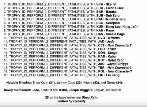 RAI - Raiden / Rain. Talán Rain, mert Raident előfordul, hogy Raydennek írják...kódolva lehet akár Ynal is a neve (saját teória).Kicsit vegyesek az érzéseim. Jacqui és Frost szerintem rohadtul pazarlás, és ha a fenti következtetések jók, már csak 4 (vagy 5, ha a RAI Raident jelöli) hely van, Shao Kahnt is az alap 25be sorolva.