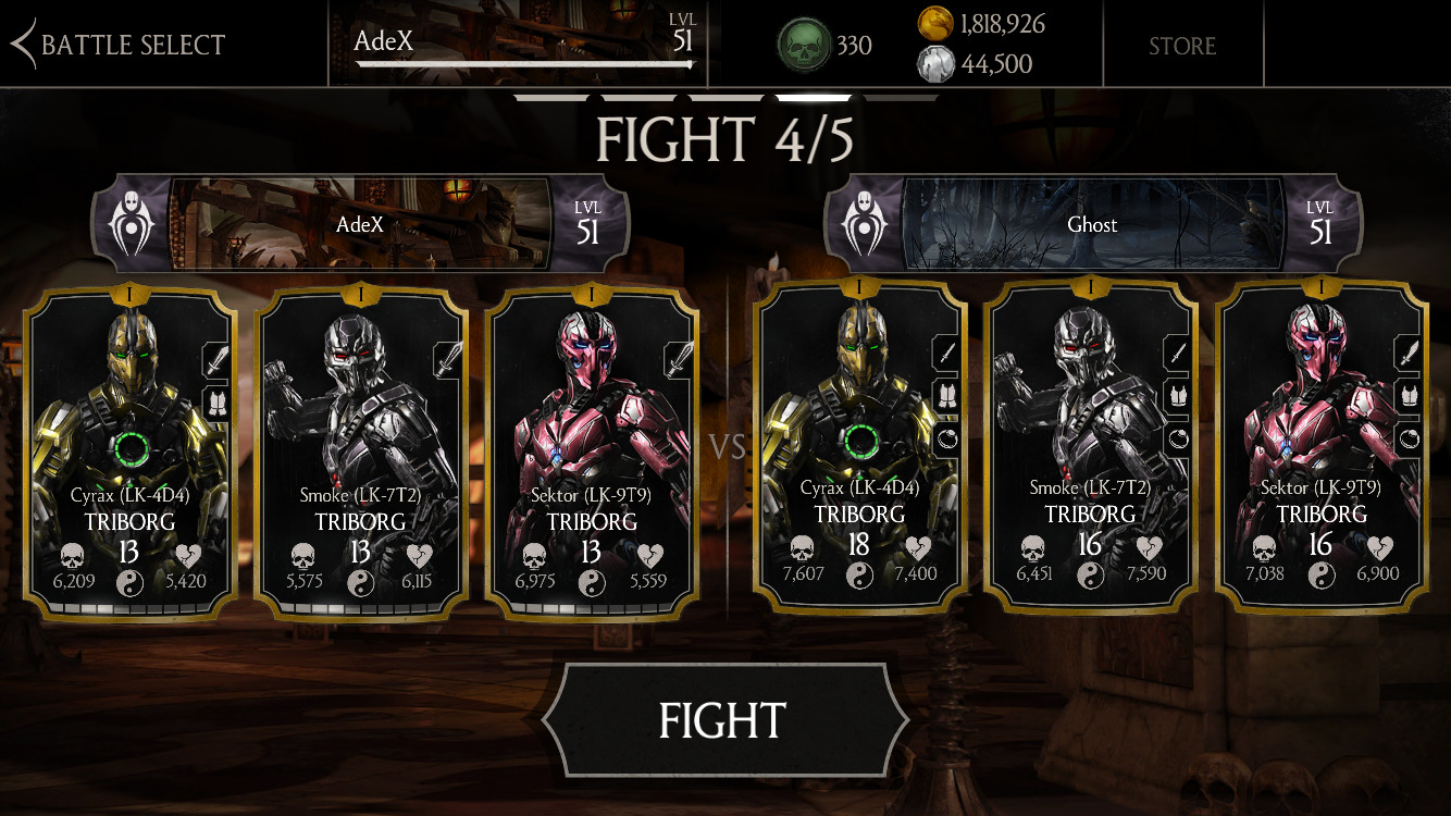 Nekem félév után alakult ki az a helyzet, hogy lassan meglesz a 2. csapatom is a játékba. Ezzel még jobban felfog gyorsulni a játék. Kontender III.-ba kéne végeznem minden session-be. Azért az már nem gyenge. Én most gyűjtöm a soulokat, igaz nem tudom mire. Kombat Pack-et sem veszek most egy ideig. Egyszerűen így is annyi karakterem van már, hogy nem győzök válogatni. Ne legyünk kérem telhetetlenek.