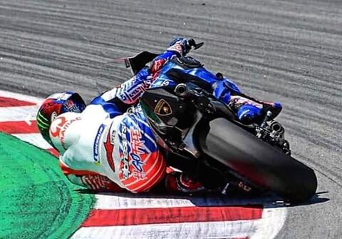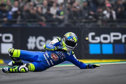Ez a Locatelli az első körben a highisde után. Ami pörög az a fékfolyadék tartály.