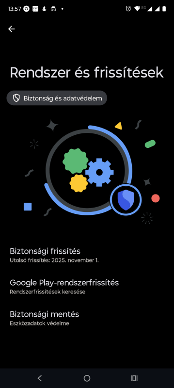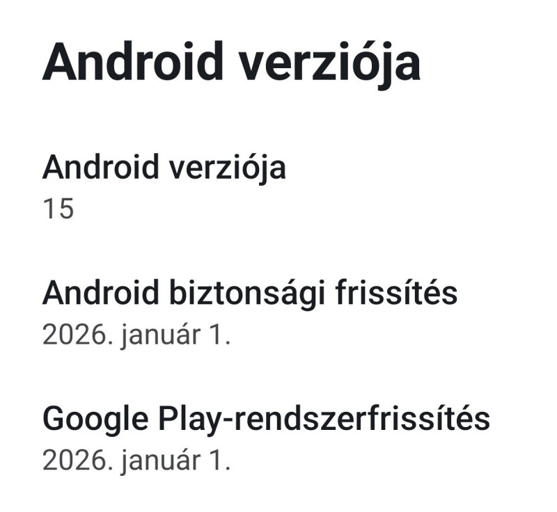 Frissítettem pár napja OTA-n keresztül vagyis jelzett a teló, hogy van frissebb verzió. Ez meg is történt, utána tán egy nappal a Goggle Play rendszerfrissítés is, ami már decemberben 2026. január 1. dátummal frissült. Nq aszóval lement az a Goggle Play-es frissítés, azóta ez is 2025. november 1. dátummal szerepel, akár a biztonsági frissítés...