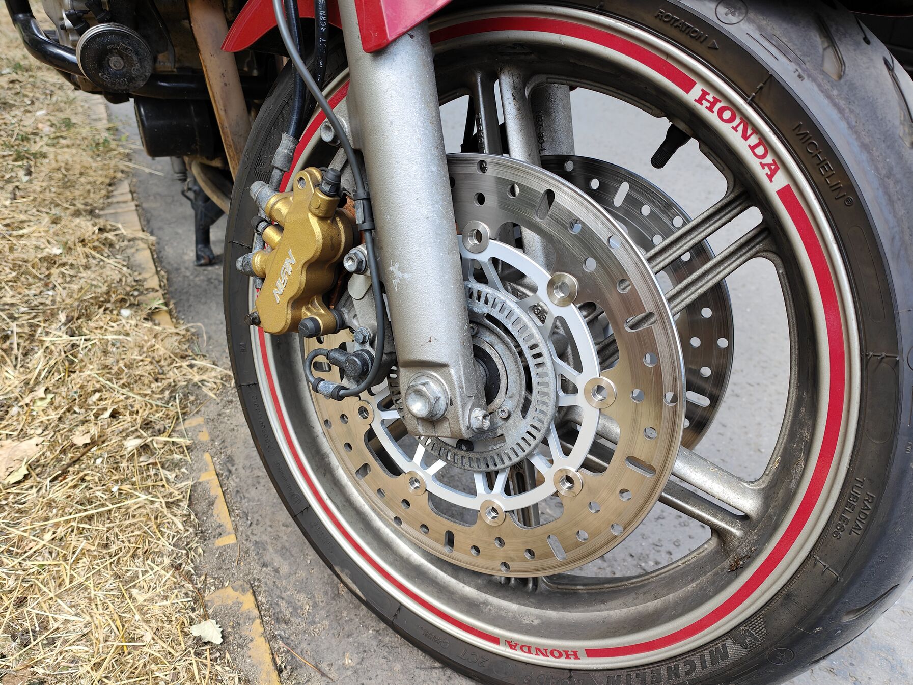 Nem digitalis, rendesen progressziven adagolhato, de egyreszt a fekkart huzva sokkal hamarabb fog, masreszt sokkal egyenletesebb es nagyobb lett a fekero."Ez a fek kb 50% on van jelenleg."