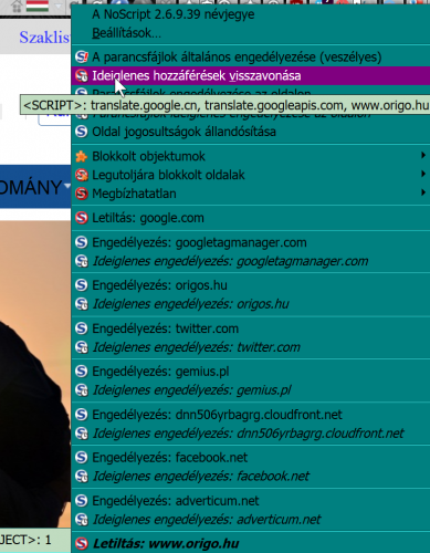 Valami probléma van a NoScriptel. Állandóan bekapcsol az ideglenes hozzáférés, hiába klikkelek rá a visszavonásra. Nyitok egy másik fület és bekapcsol az ideglenes engedélyezés az újonnan megnyitott tabon. Mi okozhatja ezt nem tudom. Alaphelyzetbe tettem a beállításokat, majd uninstalláltam és újra installáltam, de a helyzet változatlan. 42-es 32 bites Firefoxom van, a NoScript a legújabb 2.6.9.39-es verzió. Lefuttattam a adwcleaner_5.021.exe, HitmanPro-t, Emsisoft Anti-Malware, Malwarebytes Anti-Malware, a háttérben az ESET Smart Security 9-es van, mindegyik a legújabb adatbázisokkal. Egyik sem talált semmit.