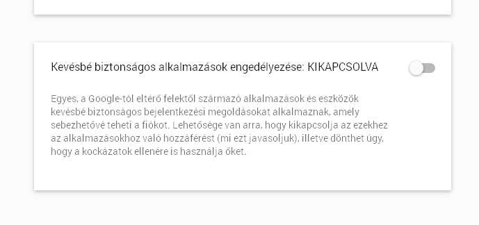 Bekapcsoltam, de az alkalmazásoknál azt írja, hogy nincs alkalmazás, ami hozzáfér a fiókhoz. Lehet, hogy nem az X-notifier az oka, de nem tudok másra gyanakodni. Az utóbbi időben többen is panaszkodtak ilyen téves Gmail fiók jelzésre/tiltásra. Engem az akasztott ki, hogy kötelezett a jelszócserére (4 cím, több gépen átírni, most újra megjegyezni x év után) hiába igazoltam, hogy az adatok az én gépemre vonatkoznak.