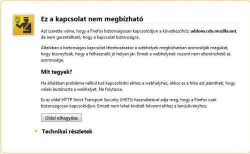 FF-t uninstalláltam (revo uninstaller legerőszakosabb módszerével, így a registry és a hdd is takarítva lett) utána, appdata/roaming és appdata/local mappákat is töröltem, majd csináltam egy tiszta telepítést. Indítás után jónak tűnt minden, a weboldalak bejönnek, viszont kiegészítőket nem tudok telepíteni, vajon mi lehet a gond? Bármilyen kiegészítővel próbálkozom, akkor azt írja: Hiba történt a(z) bővítményneve letöltése közben. Próbálja újra. -