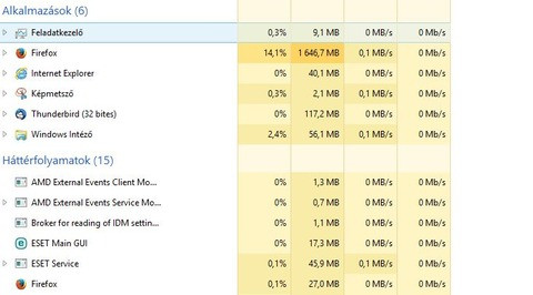 Én már ezt nem értem,meg van nyitva a firefoxban most vagy 23 lap igaz a memória fogyasztást 1550MB re írja de tegnap töröltem az eset nod32 es vírusirtót és most furcsa mód nem nyögve nyelős a böngészés ennyi lappal sem az ethernet sem pörgi halálra magát.Most akkor nem értem,hogy vajon akkor a vírusirtó is hozzá járulhat a szarakodáshoz?
