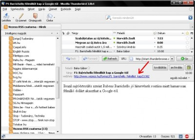 Mellékeltem egy képet ami bejelöltem egy RSS hírforrás által megjelenített linket. Az lenne a kérdés, hogy hogyan tudom elérni, hogy erre a linkre kattintva a thunderbrowse-ban és ne a külső böngészőben jelenjen meg az oldal.