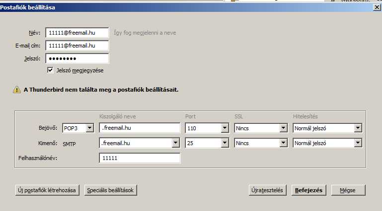 Olyan problémám van új postafiók hozzáadásánál a TB-ben, hogy akármelyik e-mailt próbálom, azt írja ki, hogy: A konfiguráció nem ellenőrizhető: rossz felhasználnév vagy jelszó. Mindkét eset kizárva... nyilván tudom a mail-címeimet és jelszavaimat