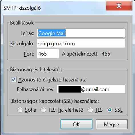 Nálam, a gmail esetében, így van beállítva az SMTP kiszolgáló és minden tökéletesen működik.