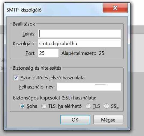 Levélküldő kiszolgálónak "smtp.digikabel.hu" van beállítva.