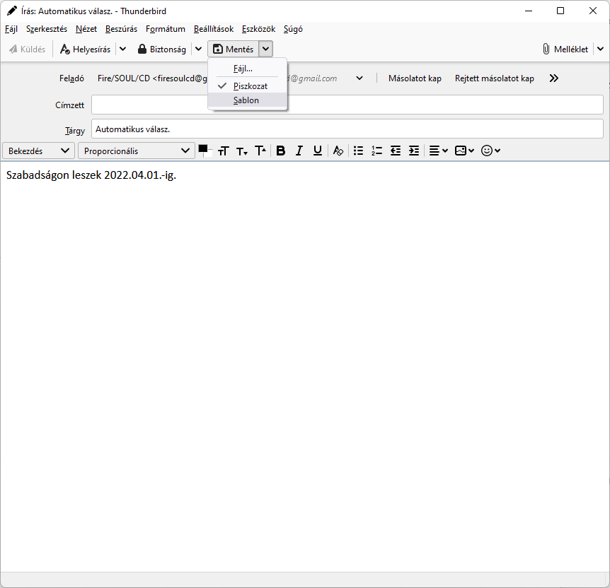 # Üzenet/Új üzenet, megírod a levelet és Sablonként mented