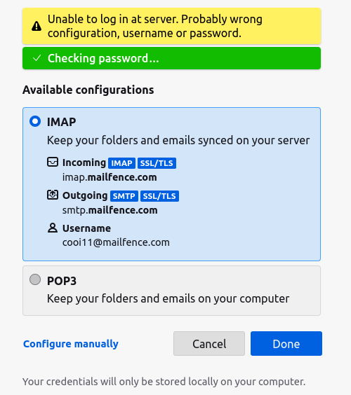 SMTP password: mailfence.com jelszavadIMAP Server: imap.mailfence.com