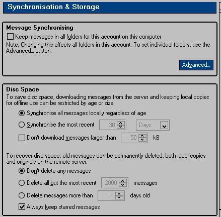 A postafiók beállításokban a kiszolgáló beállításai alatt az indításkori és 10 percenkénti ellenőrzést kikapcsoltam, ez ok. Viszont ez nem befolyásolja az "Üzenetek letöltése" gomb működését. Azzal továbbra is szinkronizálni akar.