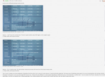 A memoria bench ertekeket illetoen nekem ugy tunik, scientia keveri az elmeleti memsavszel fogalmat a kihasznalhatoval. Igaz, hogy mindket konfigban hasonlo memoriak vannak, kozel egyforma elvi savszellel (EVERESTben az Alaplap/Alaplap/Memoriabusz tulajdonsagai alatt nezheto meg), de hogy ezekbol mennyit tud tenylegesen kihasznalni egy egyszalas alkalmazas, az mar hw implementacio fuggo, es pont ezt mutatja meg az EVEREST. Mind a ket procin a szamara kedvezobb savszel mero rutin fut a tudtunkkal leggyorsabb verzioban. Ha felbukkanna egy gyorsabb kod K10-re (tobbszal es realtime priority nem er), akkor orommel lecserelnenk arra (bar erre eleg keves eselyt latunk, eleg sokmindent vegigprobaltunk mar).