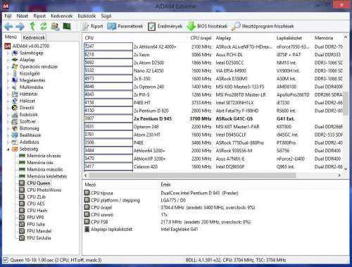 Mi alaporajelu (3.40 GHz) Pentium D 950-nel 5085 pontot kaptunk a Queenben, 32 bites WinXP alatt.