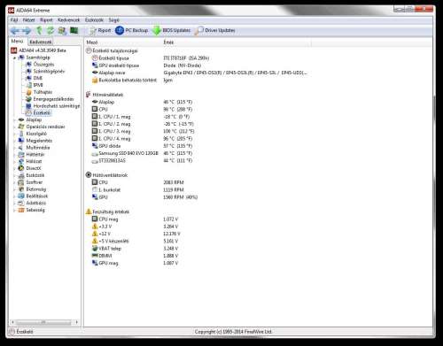 valamit elronthattatok az új Everest bétában (vagy valamelyik korábbiban) mert a VGA-m ventilátorának sebességét rosszul írja. MSI GF7900GTO-m van. a ventilátor le van szabályozva 50%-ra, ami kb 1200 rpm, az alap 4.6os ezt jól is írja, az itt közzétett legújabb (korábbiakat nem néztem) viszont 2400 rpmet ír, de mellé zárójelbe helyesen írja, hogy 50%