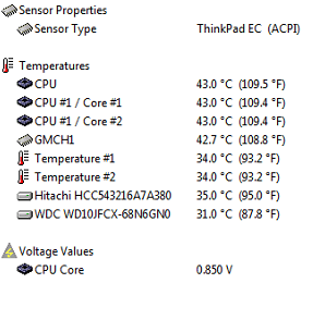 Egy Lenovo T61 notebook-on futtatom az AIDA64 Extreme verziót és próbálom kinyomozni, hogy a felismert hőmérséklet szenzorok közül mit jelenthetnek a "Temperature #1" és "Temperature #2"?