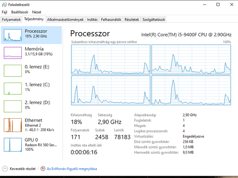 A Win10 újratelepítését nem próbáltad még? Olyannal már találkoztam, hogy korábban egy kevesebb magos processzor volt a gépben, és processzorcserét követően valami miatt nem látszott az összes mag, hanem csak annyi, amennyi a korábbi processzorban volt. Nem szabadna, hogy ilyen előforduljon, de mégis volt már rá példa.