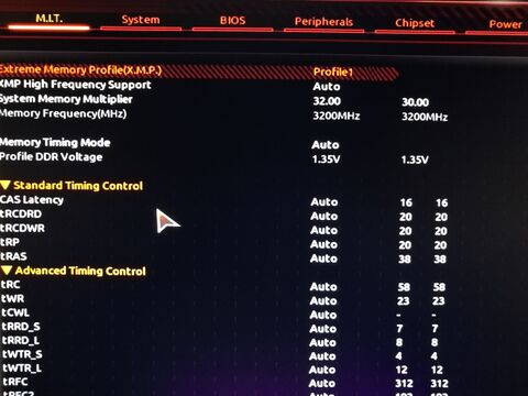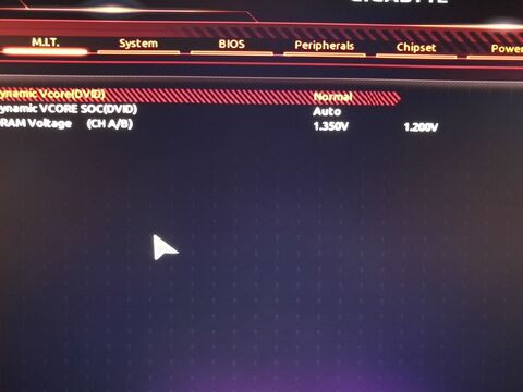 Nem tudom, hogy ez Giga sajátosság, hogy visszadobálja az XMP profilt alapra, itt azért elég sokaknak volt ilyen probléma, nekem is csinálta (Corsair 3000), most fix 1.35 V-n járatom 3200 Mhz-en, azóta se állt vissza. Szerintem a SOC voltage lehet ludas vagy az indításnál ez a dram testing, amikor még fekete a képernyő.