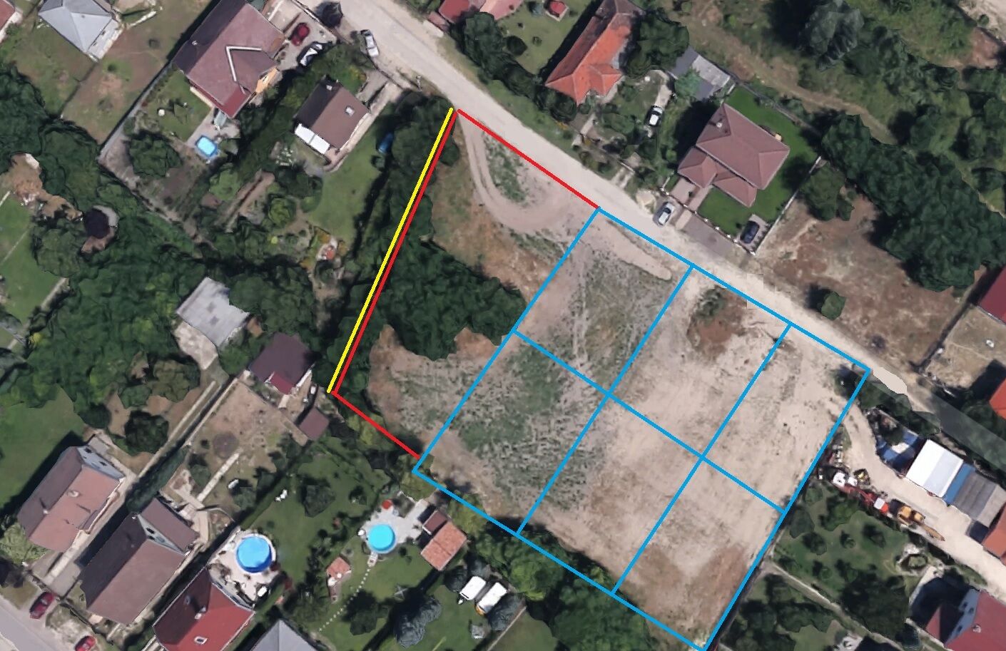 a kékkel jelölt részeken lettek házak, a piros részhez eddig nem nyúltak, ott nem volt kerítés se az utca felőli oldalról, viszont pár hete kiírtották a kiserdőt, és a talajszintet az utcafront szintjéhez igazították, tehát most sokkal lejjebb van a szüleim telkének a végénél a kerítés mellett közvetlen a talaj (majdhogynem alászedtek a kerítésünknek).A gond az, hogy a beköltözött családok gyerekei hátramennek a kerítésünkhöz, és rajta csimpaszkodnak, de ez félő, mert kifelé akár ki is dőlhet (a szülőknek lett szólva, de pár nap múlva ugyanúgy folytatták).