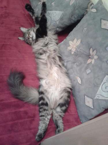 amúgy tök aranyos macska, mikor hazaérek leülök oda ugrik az ölembe és dorombol, vagy felmászik a hátamra és nyalja a hajamat