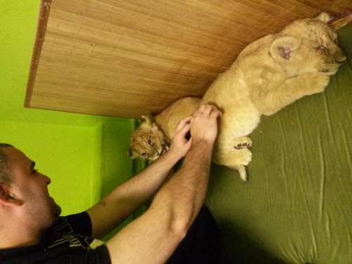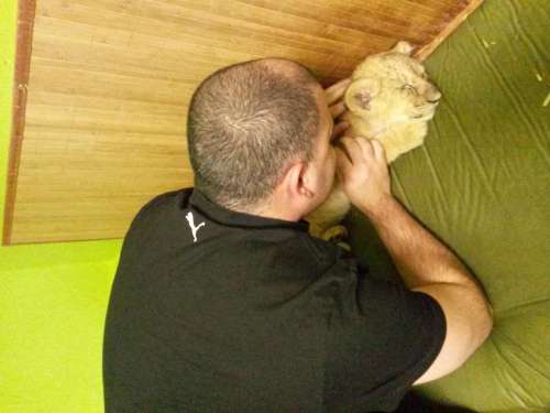Az apjukat Zimbat mar vagy 4 eve simogattuk akkor o mar majdnem fel eves volt, van is otthon kep rola valahol, elokukazom. Februarban az elso gyermekeit simiztuk, egyiktol nyelvest kaptam az arcomra, a mostani alom a 2. neki. Amugy d.e.10tol delig, majd 14 oratol 16 oraig lehet oket simogatni.