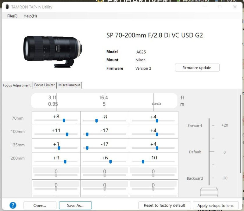 Nagyjából két és fél évig használtam Tamron 70-200G2-őt a Nikon D750-en. Azon felül, hogy az elején rongyosra szoptatott azzal, hogy minden létező tárgytávolságon és gyújtótávon másfelé ment félre az AF, imádtam. 3 hónapig szenvedtem azzal, hogy hol elől, hol hátul volt a fúkusz néhány centivel, így portréra halál volt használni 2.8-on. Aztán meguntam a dolgot, és vettem egy LensCal-t, meg egy Tamron Tap-IN utility-t, állványra raktam a gépet és a lenscal-t is, rászántam egy délutánt, és a jellemző tárgytávolságokon a hozzá kapcsolódó jellemző gyújtótávokkal párosítva elkezdtem nézni, hogy frontos, back-es, vagy éppen betalál az AF. Mikor ez megvolt, elkezdtem szépen a két véglettől haladva állítani, a konzollal az objektívbe felrögzíthető AF korrekciók ugyanis hatnak egymásra is. Tehát mértem egy ugyanazzal a tárgytávolsággal és gyújtótávval 70-en és 200-on is, majd átlagoltam, és úgy állítottam be, ahogy jellemzően én fotóztam, tehát a 135 millimiéter nagyjából előnyben volt mindig a 70-nel szemben, és a 100 volt a másik, amit preferáltam a többi kárára. Ezek minimális eltérések, de így lehetett elérni, hogy az írisz legyen a fókuszban, ne a szempilla, vagy a portré alany szeme sarka. 4-5 órával, és nem egy a jók_rvaanyáttal később lett egy olyan objektívem, ami TŰPONTOS volt minden tárgytávolságon és gyújtótávon az én vázamon legalábbis. Amikor eladtam, nagyon sajnáltam, mert a kezdeti szívást követően volt egy olyan objektívem a gyári árának feléért, amiben jobb volt a stabilizátor, szebb volt a bokeh, és az élessége sem maradt el, csak felébe került a NIKKOR-nak. Végül azért váltam meg tőle, mert Z-re váltottam, és adapterrel én azt tapasztaltam, hogy hektikusan működött. TAMRON szerint Z-n nem működnek a profilok, mert ott ugye nincs PDAF szenzor külön, az AF állítás a szenzoron működik, tehát bármilyen korrekciós eltolást is állítasz be az objektívbe, felesleges lesz, mert a váz úgyis ráfinomít kontraszt alapon. Az egyetlen megoldás az lett volna, hogy azt az egy korrekciós értéket használom, amit a váz kínál, az viszont nem volt elég közel sem, lásd az alábbi képet. Persze a Nikon és a Tamron szerint is MILC rendszeren nem lehetséges a front meg a back fókusz, aztán a vázban azért mégis csak ott van rá az opció, plusz én is tapasztaltam. Állványon soha nem volt érdemben pontatlan, ellenőriztem kétszer-háromszor is, de akció közben többször hibázott és kicsit tétovázott is a D750-en tapasztaltakhoz képest. Lehet, hogy az óta ezt is javították, nem tudom. Eladásnál szintén D750-re került, adtam vele az általam kalibrált profilt is feltöltve, és a tulaj szerint tökéletesen bevált nála is. Kalibrálatlanul Ő se érezte kellően pontosnak. Magyarán, ha emellett döntesz, lesz egy kiváló anyagminőségű objektíved (fém az egész, imádtam megfogni, érzésre egy fikarcnyit se marad el a milliós, Z-re való 70-200-tól amire cseréltem), amivel nagyon boldog leszel, de az árába kalkulálj bele egy félnapos szívást, és egy Lenscal + Tap-in kombó árát is.